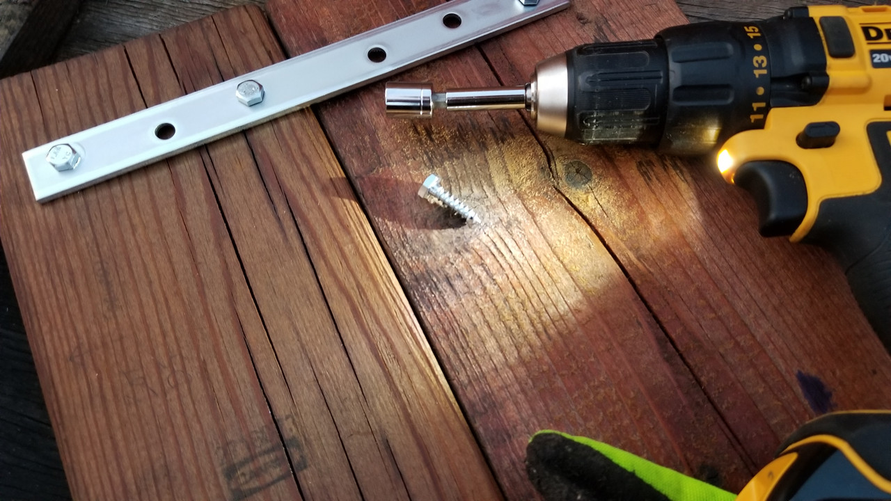 I stained the boards, made my cuts, and connected the two boards today using brackets and lag screws on the underside.