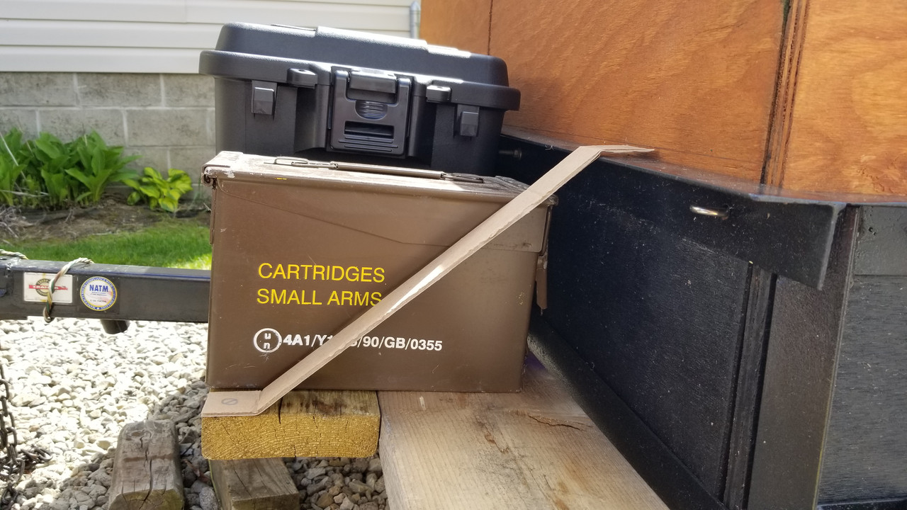 I didn't get the tongue box mounted today as I had planned, but I did pick up two 50 cal ammo cans.