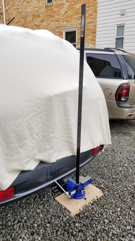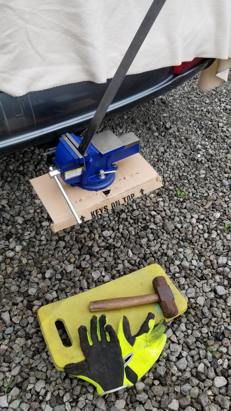 (I'm planning to add a board between the step and the vise, but haven't gotten to that yet - cardboard temporarily protects the two surfaces)