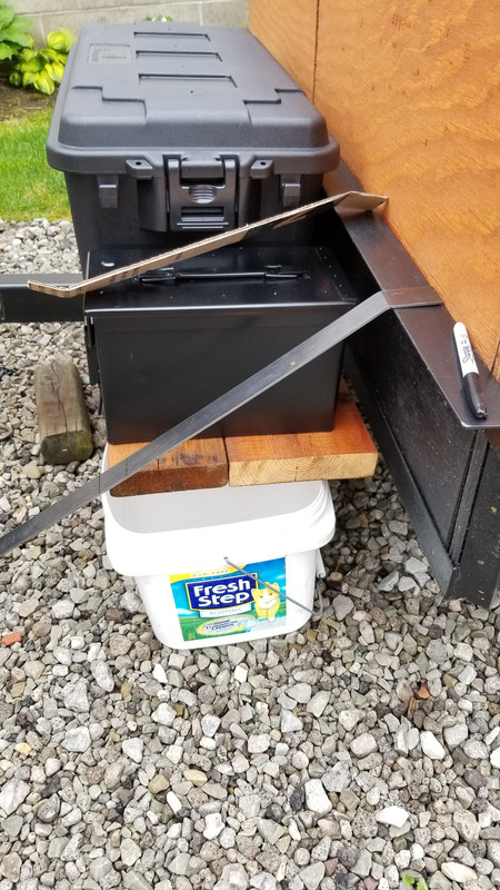The ammo cans will be going on either side of the plastic box, but instead of placing them as shown above, I am flipping them the other direction.