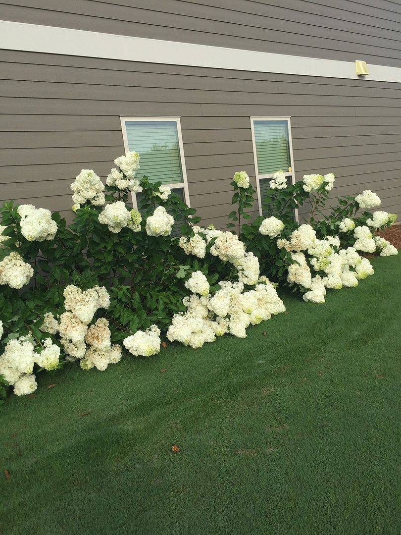 Can't bump the bed out due to the way the irrigation was designed. I was told by the local garden center where I purchased to make sure none of my lawn fert gets on them and use bone meal on them in February when I cut them back.Bump the bed out and plant a line of low boxwood. Those hydrangeas are better as background plants anyhow